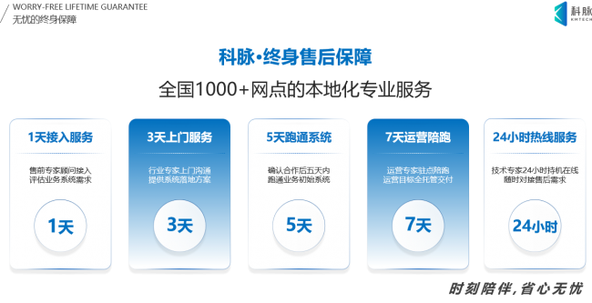 科脉在全国拥有1000多个本地化服务网点,覆盖34个省级行政区、300多个地级市、2800多个县级单位,提供从售前顾问接入、行业专家上门、系统跑通到运营专家驻点陪跑的全周期服务保障,确保大型商超客户在系统上线和日常运营中得到及时、专业的支持。
