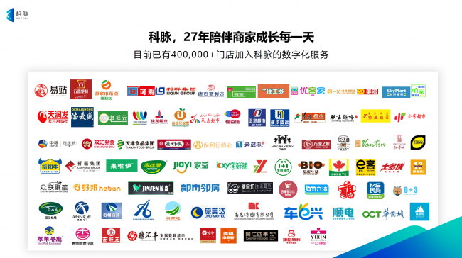 科脉已助力全国超过40万家门店实现数字化转型,其中包括众多大型商超客户: