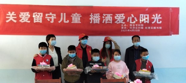 4月23日上午,由邢台市妇联主办,任泽区妇联、任泽区图书馆联合承办的“关爱留守儿童 撒洒爱心阳光”巾帼志愿服务活动在骆庄乡东望村小学举行。为东望村小学的6名留守儿童送去了爱心图书、爱心知识书包。巾帼志愿者和孩子们一起分享红色经典故事、感受时代记忆,珍惜美好生活,在世界读书日这天,为孩子们送上了一份具有特殊意义的节日礼物!
