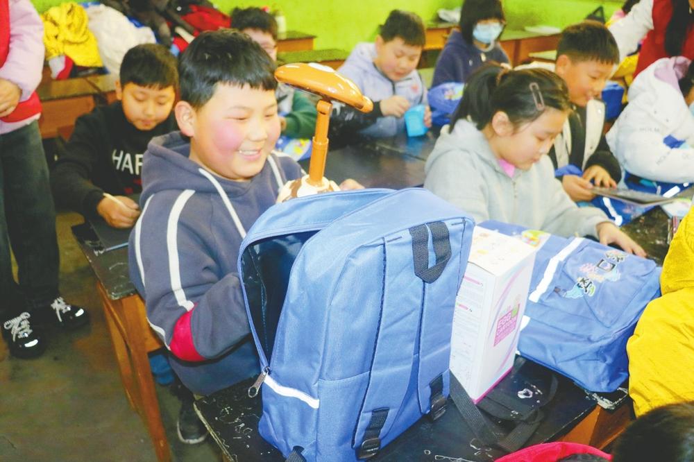 本报讯近日,隆尧县志愿者服务协会联合隆尧镇人大、隆尧县消防救援大队、隆尧志愿服务联合会走进该县义丰小学,为50名困境留守学生送去内含书包、护眼台灯、传声机、刮画本、字帖、钢笔等学习用品的“梦想口袋”。