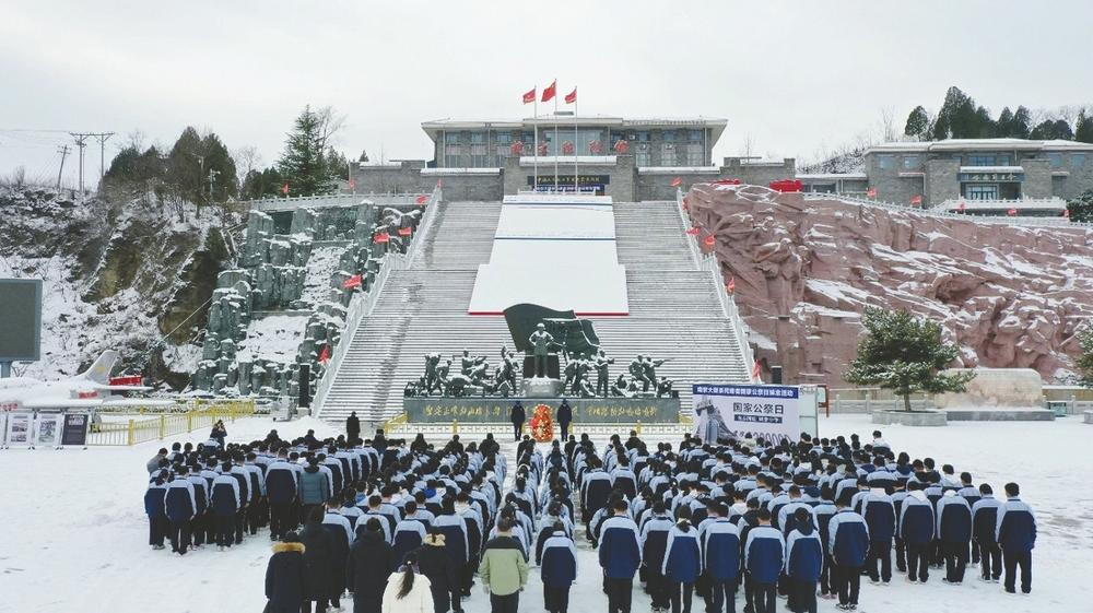 12月13日,抗大陈列馆与全国抗战主题纪念馆(博物)馆同步开展南京大屠杀死难者国家公祭日悼念活动。邢台市浆水中学师生代表300余人参加,深切缅怀南京大屠杀死难同胞,期盼世界和平。
