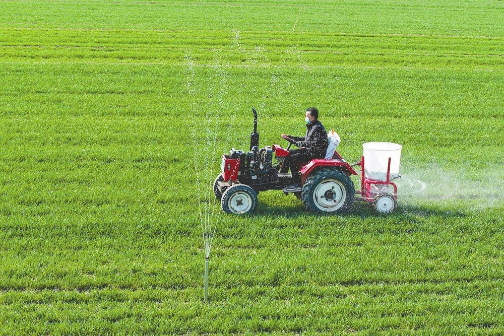 3月17日,内丘县东南光村麦田里,村民驾驶机械为小麦施肥。连日来,当地农户抢抓农时,开展施肥、灌溉等春管作业,为丰产丰收筑牢根基。