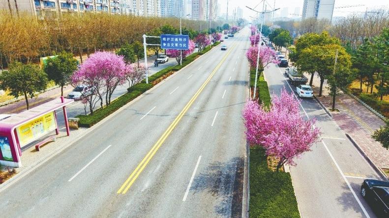 中华大街的粉艳花海