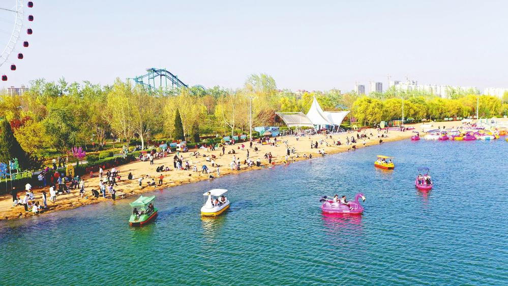清明假期,不少市民游客在七里河风景区骑行赏景、亲水游玩,沉浸式享受轻松惬意的假期时光。韩文洲、李成行摄