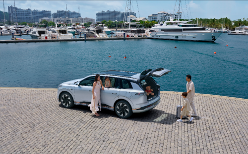 这台车的空间表现,用“降维打击”形容毫不为过。5米车长、3米轴距的“巨无霸”身材,让6座布局不再是“应急凑合”。二排独立座椅间距堪比豪华MPV,三排也能轻松容纳成年人;即使满载出行,后备厢仍能吞下3个28寸行李箱,露营装备、婴儿车、折叠自行车统统不在话下。对于二胎家庭而言,这哪里是车,分明是能移动的“家庭生活舱”。
