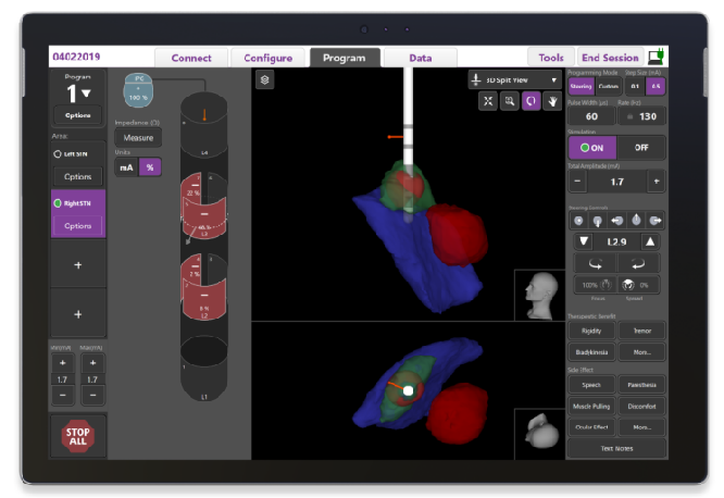 Stimview XT程控系统堪称“神来之笔”:它让原本不可见的电流刺激在屏幕上实时显形,医生能直观看到电流覆盖的神经区域,程控效率提升56%,彻底告别了传统“试探性调节”的盲目性。而植入体内的脉冲发生器(IPG)身型虽小,却拥有长达25年的质保期,且具有零伏保护,不会因为电量耗尽而引起仪器损坏,让患者术后没有充电焦虑。