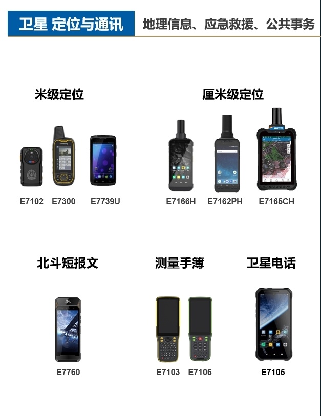 在卫星定位与通讯终端领域,从米级、厘米级定位的测量终端,到支持北斗短报文和天通的卫星电话,卫星通信系列产品广泛应用于地理信息采集、应急救援指挥、公共事务管理等场景,为精准决策提供数据支撑。