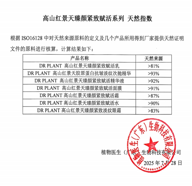 资料显示,高山红景天臻颜紧致赋活系列整套天然来源成分>80%,酒精、色素、激素、重金属、矿物油、荧光剂、果酸等8大项0添加,适合25岁及以上年龄段的各类肤质,尤其是敏感肌人群使用。