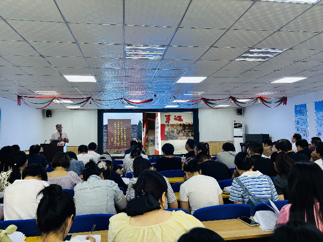 讲座中,张殿祯教授运用丰富史料,带领教师系统回顾了中国共产党从诞生到新时代的光辉历程与伟大成就,深刻阐释了党的精神谱系、“人民至上”初心及其时代价值,强调了赓续红色血脉对青少年成长和担当民族复兴大任的重要意义。现场气氛热烈,师生沉浸其中。互动环节大家踊跃发言,学生代表表示深受震撼要努力学习,青年教师则感悟到这是一次深刻的党性锤炼,将把精神力量融入教学。